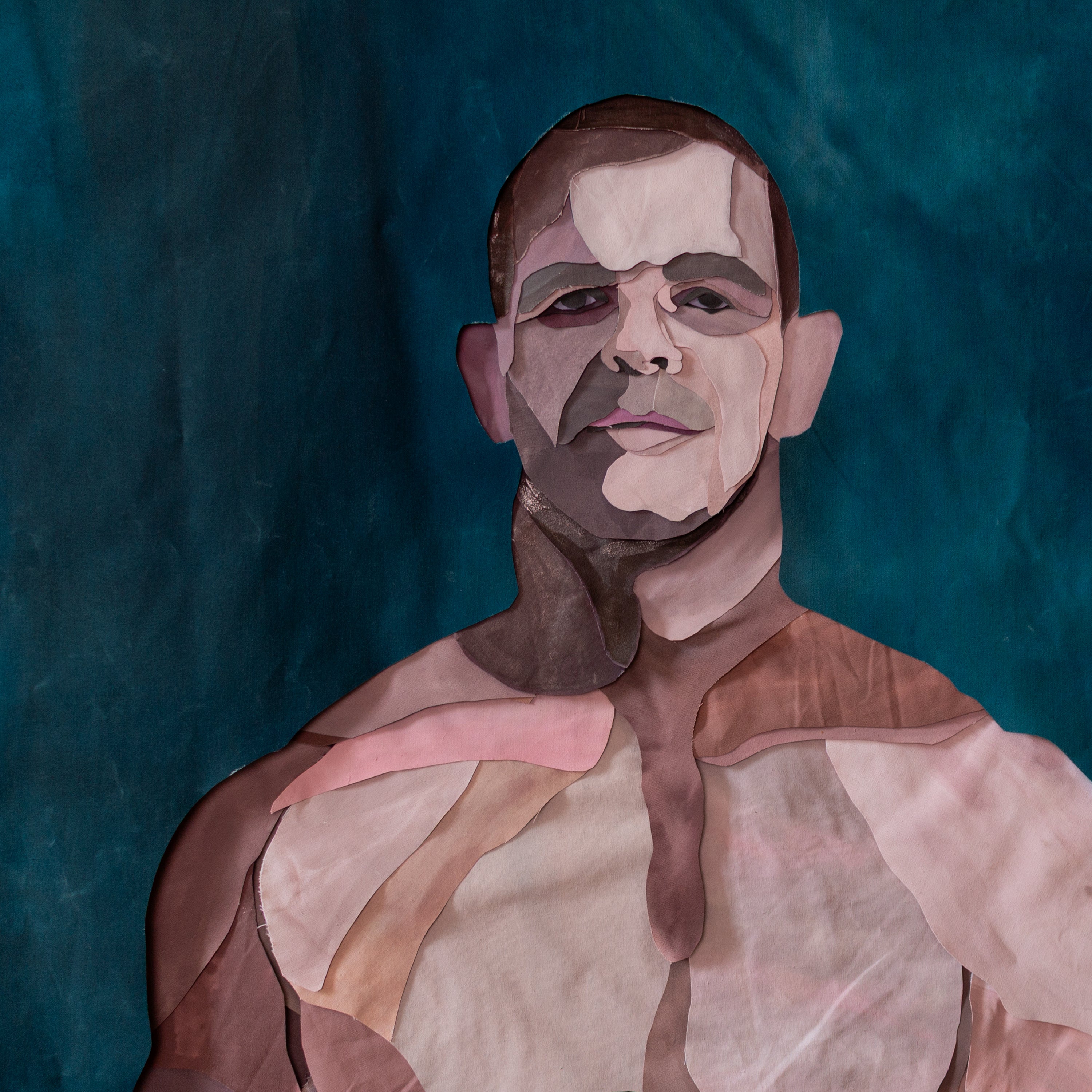 This work continues Jason Jowett’s signature layered fabric style, first developed as a way of navigating depression and self-reflection. Hand-painted linen is cut, layered, and sewn together to create depth and movement, embodying both vulnerability and resilience.