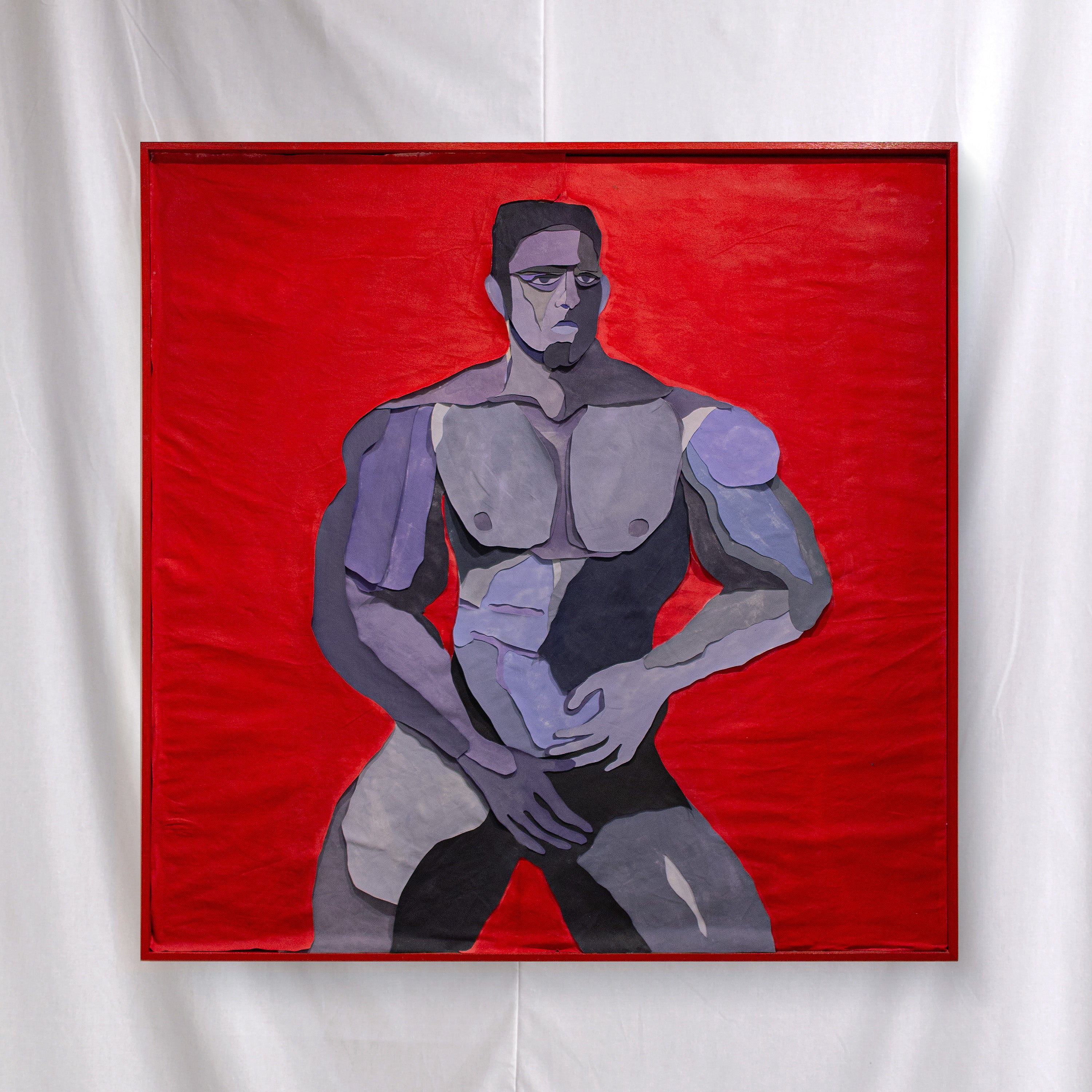 This work continues Jason Jowett’s layered fabric style, first seen in Detached. Through hand-cut, painted, and sewn linen, it explores the “revenge body” the ritual of post-breakup transformation that blends self-care, reinvention, and performance. In Tyler, a staged photoshoot becomes a declaration of confidence, capturing the tension between private recovery and public identity.